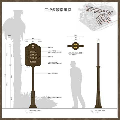 住宅小區(qū)標(biāo)識牌介紹:住宅小區(qū)標(biāo)識牌系統(tǒng)主要服務(wù)的對像是業(yè)主以及來訪人員等。整套的住宅小區(qū)標(biāo)識系統(tǒng)需要完善的標(biāo)識規(guī)劃、布點(diǎn)、整體的導(dǎo)視方案,還需要統(tǒng)一字號、色體、材質(zhì)工藝,以及體現(xiàn)人文關(guān)懷等細(xì)節(jié)處理。比如在處理字體大小的時(shí)候,就要照顧人在靜止和動態(tài)的時(shí)候,對文字的觀察就有不同,靜止的時(shí)候,可以小一點(diǎn),而在行走的時(shí)候,字體就要大一點(diǎn)。在對圖形的時(shí)候,需要很高的辨識度,不能讓人產(chǎn)生歧義或誤解。在材質(zhì)選擇方面,就要考慮到經(jīng)久耐用,如果是劣質(zhì)材料,就會引起不必要的麻煩。
